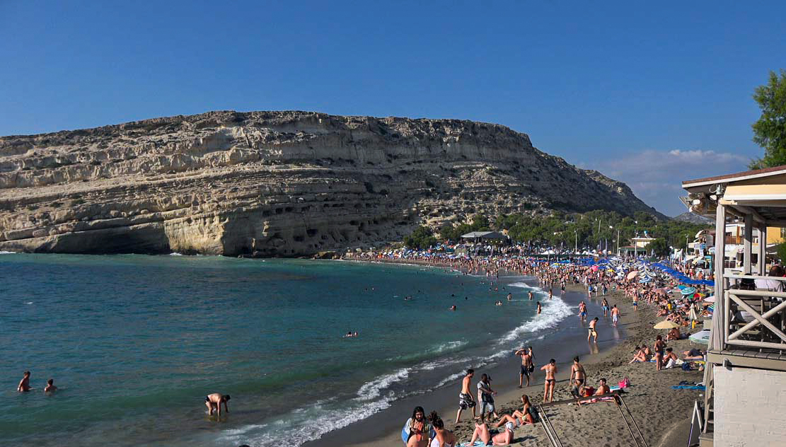 Matala, located approximately one hour from Heraklion, is one of the most distinctive destinations in southern Crete. It is famous for its impressive caves carved into the cliffs and its golden beach with crystal-clear turquoise waters. In the 1960s, Matala became a global symbol of freedom, hosting a vibrant hippie community and preserving its authentic, bohemian spirit to this day. An ideal choice for a day trip, it perfectly combines natural beauty, history, and a relaxed summer atmosphere.